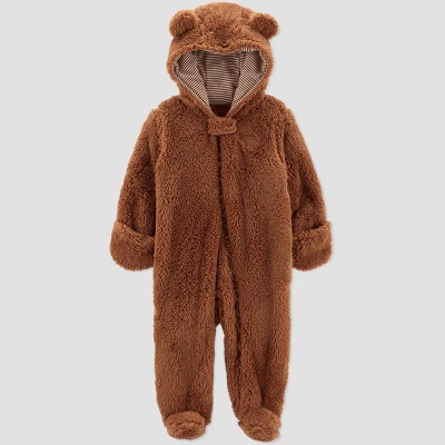 Bring on the cozy! This Carter’s Just One You sherpa hooded pram will keep your little one warm and comfortable on chilly Fall days. This brown pram for baby boy features adorable 3D bear ears and bear footart. The top-to-bottom zipper makes it easy to take on and off when you’re on the go. Can you just imagine how cuddly he’ll look sporting this footed 1-piece? This hooded sherpa suit makes an excellent gift for new babies too!