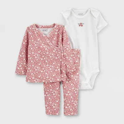 Carter's Just One You® Baby Girls' Cardigan Floral Top & Bottom Set – White/Pink