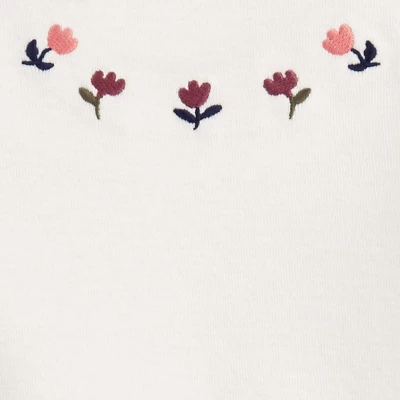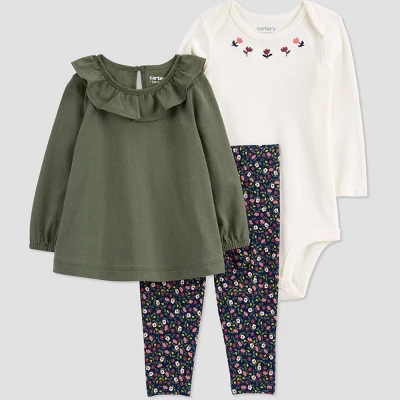 Your busy mornings just got easier with this Carter’s Just One You 3-piece playwear set. This set for baby girls includes a stylish long sleeve green tunic with navy floral print pants and a creme bodysuit with convenient leg snaps. You’ll effortlessly mix and match this set for two complete outfits or layer it to keep baby girl warm on chillier days. Looking for the perfect baby shower gift? This one is sure to make a new mama swoon!