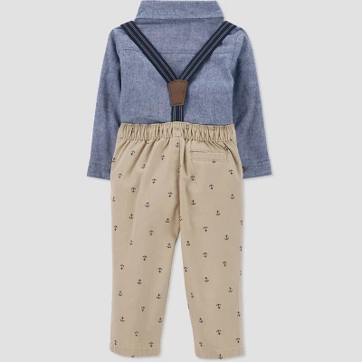 Carter's Just One You® Toddler Boys' Anchor Chambray Suspender Set – Khaki/Blue