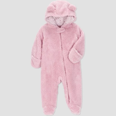 Chilly days ahead? Embrace the layers with this hooded faux shearling 1-piece pram for baby from Carter’s Just One You. This warm 1-piece jumpsuit is the perfect coverall for baby featuring a full-length zipper and foldover mittens to keep them warm! The little animal ears on the hood make this 1-piece for baby even more adorable!